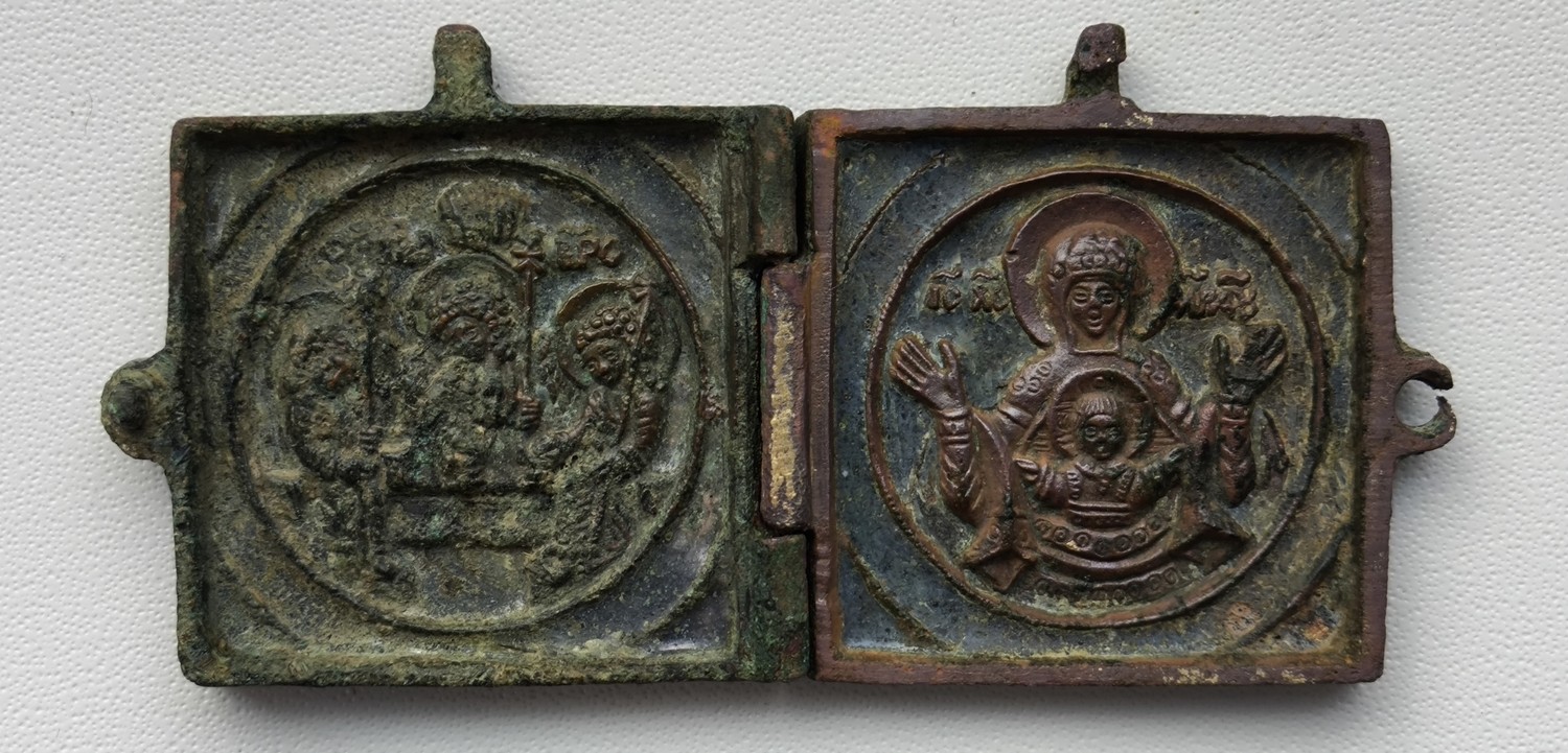 | rom869635, Вот так складень будет выглядеть после чистки. Складень Богоматерь Знамение, Троица. | № 173295 [1]