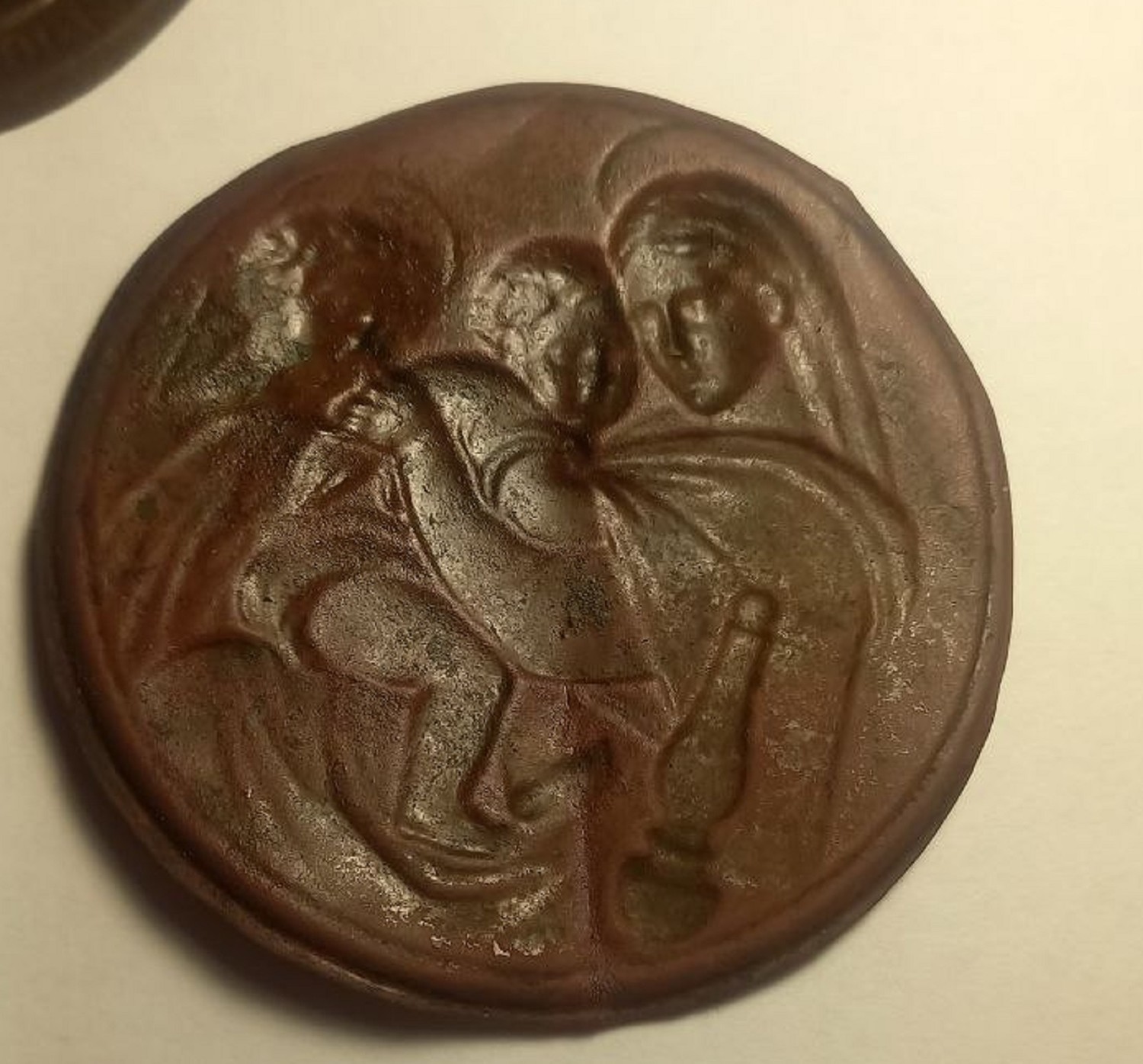 | 1.Дева с младенцем диаметр 77мм вес 22,9г. 2. Диаметр 73мм вес 18,7г. определение оценка с дальнейшей продажей.