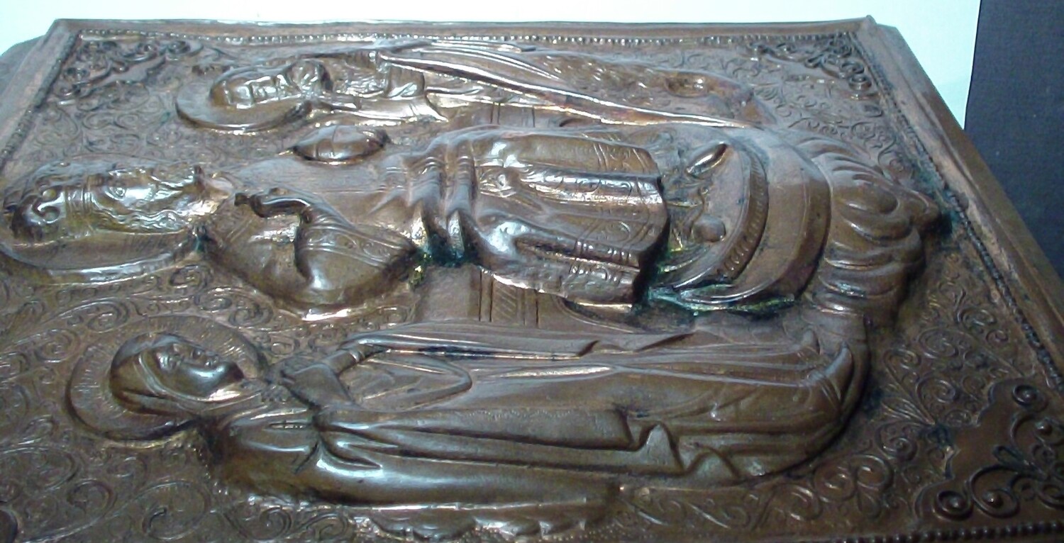 | Приятные предметы, особенно крупная накладка (Деисус). Однако, совсем не наш профиль: у нас ведь литьё, а это НЕ литье... Советовал бы выставить на Айкон-Арт, в этот раздел: https://www.icon-art.info/phpBB2/viewforum.php?f=40