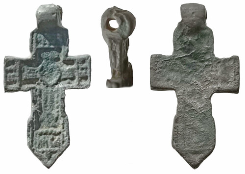 Главная » Каталог » Килеконечные кресты X - XVI века » Голгофский крест (R1) » Tkkl11-036| КРЕСТ КИЛЕКОНЕЧНЫЙ СО СТИЛИЗОВАННЫМ ИЗОБРАЖЕНИЕМ ГОЛГОФСКОГО КРЕСТА НА ЛИЦЕВОЙ СТОРОНЕ И ПЛЕТЁНОГО ОРНАМЕНТА НА ОБОРОТНОЙ Происхождение: Ивановская обл. Датировка: посл. треть 15 — нач. 16 века Размер: 26 х 15 мм Степень редкости: R5 Номер в каталоге: Tkkl11-036 | |