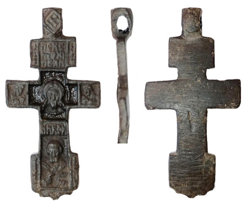 Главная » Каталог » Килеконечные кресты X - XVI века » Поклонение Образу Спаса (R6) » Tkkl06-005a| КРЕСТ КИЛЕКОНЕЧНЫЙ С ИЗОБРАЖЕНИЕМ ПОКЛОНЕНИЕ ОБРАЗУ СПАСА НЕРУКОТВОРЕННОГО (Образ Спаса, предстоящие Богоматерь и ап. Иоанн, свт. Никола Чудотворец) Происхождение: Смоленская обл. Датировка: 15 — 16 век Размер: 50 х 25 мм Степень редкости: R5 Номер в каталоге: Tkkl06-005a | |