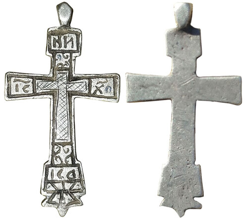 Главная » Каталог » Килеконечные кресты XVII - XX века » С изображением прямоугольноконечного креста (R5) » Tkki01-010| КРЕСТ КИЛЕКОНЕЧНЫЙ С ИЗОБРАЖЕНИЕМ ПРЯМОУГОЛЬНОКОНЕЧНОГО КРЕСТА Происхождение: Калужская обл. Датировка: кон. 16 — нач. 17 века Размер: 37 х 21 мм Степень редкости: R8 Номер в каталоге: Tkki01-010 Примечание: материал — серебро | |