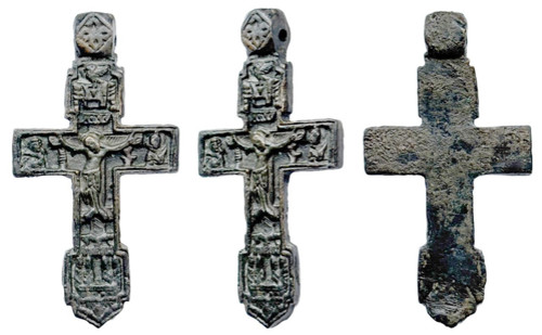 Главная » Каталог » Кресты наперсные X - XVI веков » Килеконечные кресты (R3) » Nk03-013| Крест наперсный: РАСПЯТИЕ С ПРЕДСТОЯЩИМИ (Дух Святой, Престол Уготованный, Распятие с предстоящими, избр. святые) Происхождение: Брянская обл. Датировка: 16 век Размер: 70 х 38 мм Степень редкости: R9 Номер в каталоге: Nk03-013 | |