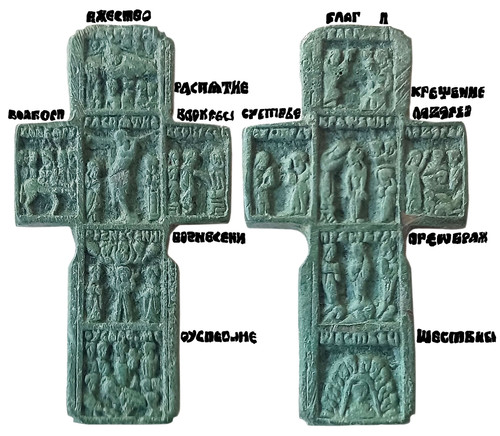Главная » Каталог » Кресты наперсные X - XVI веков » Прямоугольноконечные кресты (R3) » Nk04-004Крест наперсный прямоугольноконечный ДВУНАДЕСЯТЫЕ ПРАЗДНИКИ Происхождение: Борисоглебский р-н Ярославской обл. Датировка: 16 век Размер: 54 х 30 мм Степень редкости: R7 Прорисовка эпиграфики: А.В. Скорятин Номер в каталоге: Nk04-004 Литература и аналоги: 1. Колпакова Ю.В. Наперсные резные кресты в археологических и музейных коллекциях Пскова: к вопросу о культурных связях Пскова в позднем Средневековье // Археология и история Пскова и Псковской земли. Материалы 64-го заседания. Вып. 34. М., 2019. Рис. 1, 1. 2. Николаева Т.Б. Произведения мелкой пластики XIII-XVII веков в собрании Загорского музея. Загорск, 1960. С. 287-288. № 133. 3. Уваров А.С. Каталог собрания древностей графа Алексея Сергеевича Уварова. Отд. VIII-XI. М., 1908. С. 141. Табл. XIII, 60. Примечание: votum separatum А.В. Скорятина — подобные кресты являются имитациями крестов из рога и кости, которые создавались в Троице-Сергиевой обители или в монастырях с которыми у Лавры были тесные связи, и куда могли переезжать ученики Амвросия | |