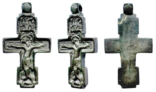 Главная » Каталог » Кресты наперсные X - XVI веков » Прямоугольноконечные кресты (R3) » Nk04-006| Крест наперсный прямоугольноконечный РАСПЯТИЕ ХРИСТОВО (В верхней части вертикального луча — изображение Престола Уготованного) Происхождение: Брянская обл. Датировка: 16 век Размер: 60 х 35 мм Степень редкости: R7 Номер в каталоге: Nk04-006 | |