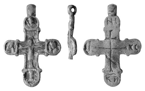 Главная » Каталог » Округлоконечные кресты X - XVI века » Распятие / Избранные святые (R5) » Tko04-004| КРЕСТ ОКРУГЛОКОНЕЧНЫЙ С ИЗОБРАЖЕНИЕМ РАСПЯТИЯ ХРИСТОВА С ПРЕДСТОЯЩИМИ И ГОЛГОФСКОГО КРЕСТА (Распятие, Богоматерь, ап. Иоанн, архангелы) Происхождение: Украина, Ровенская обл. Датировка: 13 — 14 век Размер: 57 х 38 мм Степень редкости: R9 Номер в каталоге: Tko04-004 Примечание: материал — серебро | |
