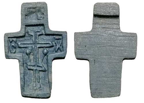 Главная » Каталог » Прямоугольноконечные кресты X - XVI века » Карачаевский тип (R2) » Tkp21-003| КРЕСТ ПРЯМОУГОЛЬНОКОНЕЧНЫЙ, "КАРАЧАЕВСКОГО" ТИПА, С ИЗОБРАЖЕНИЕМ ГОЛГОФСКОГО КРЕСТА Происхождение: Рязанская обл. Датировка: 16 век Размер: 28 х 18 мм Степень редкости: R4 Номер в каталоге: Tkp21-003 | |