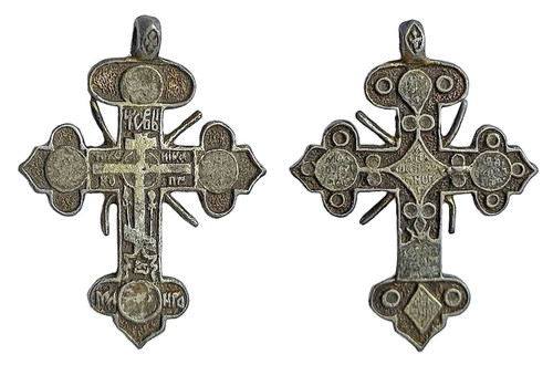 Главная » Каталог » Сердцевидноконечные кресты XVII-XX веков » Голгофский Крест (R1) » Tksr04-013| КРЕСТ СЕРДЦЕВИДНОКОНЕЧНЫЙ С ИЗОБРАЖЕНИЕМ ГОЛГОФСКОГО КРЕСТА Происхождение: Мещовский р-н Калужской обл. Датировка: кон. 17 — 18 век Размер: 40 х 30 мм Степень редкости: R7 Номер в каталоге: Tksr04-013 Примечание: материал — серебро | |